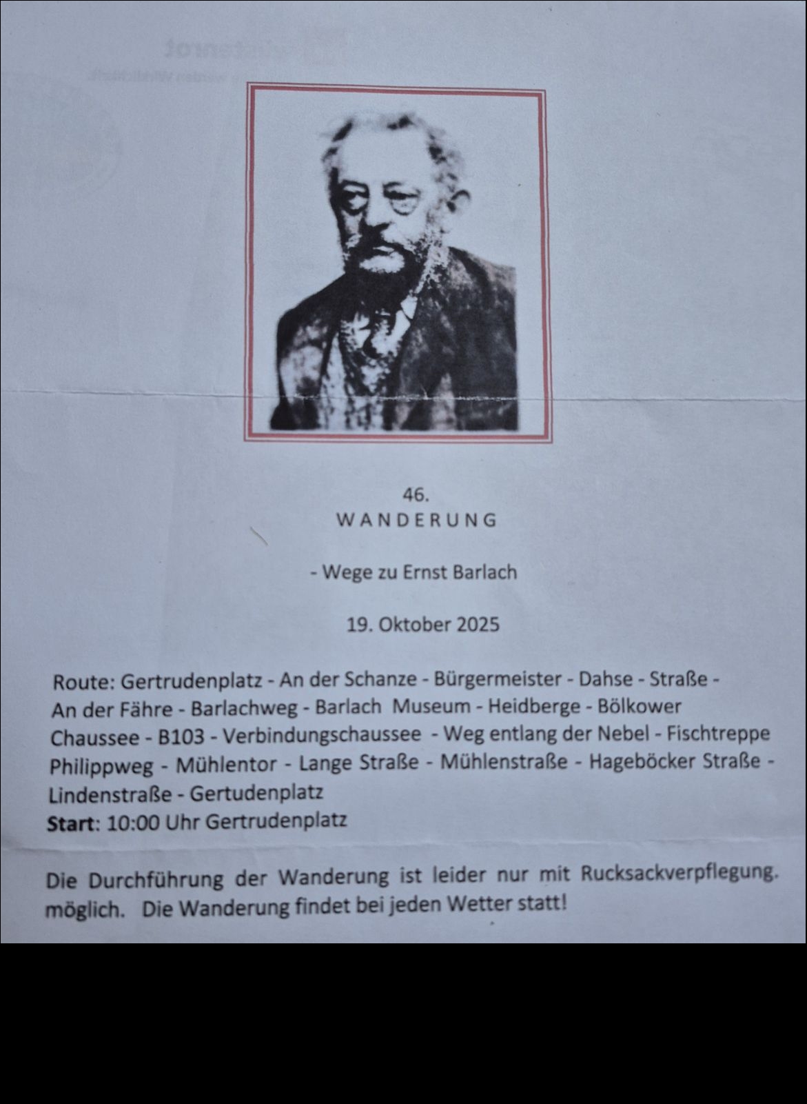 zur 46. Wanderung "Wege zu Ernst Barlach" am 19.10.2025 in Güstrow